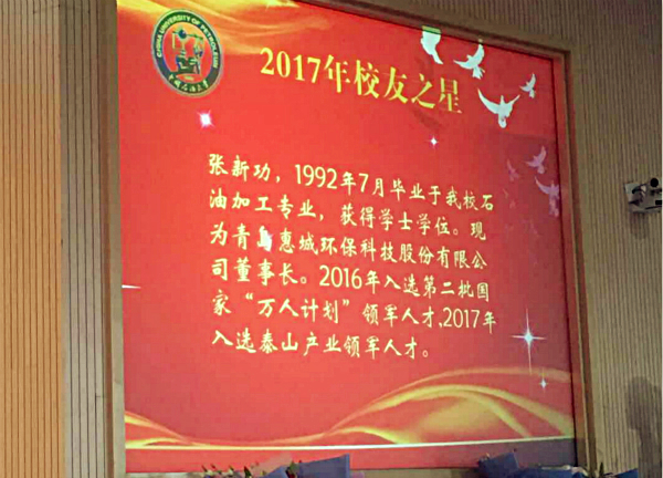 恭賀我公司董事長張新功被中國石油大學(華東)授予“校友之星”榮譽稱號