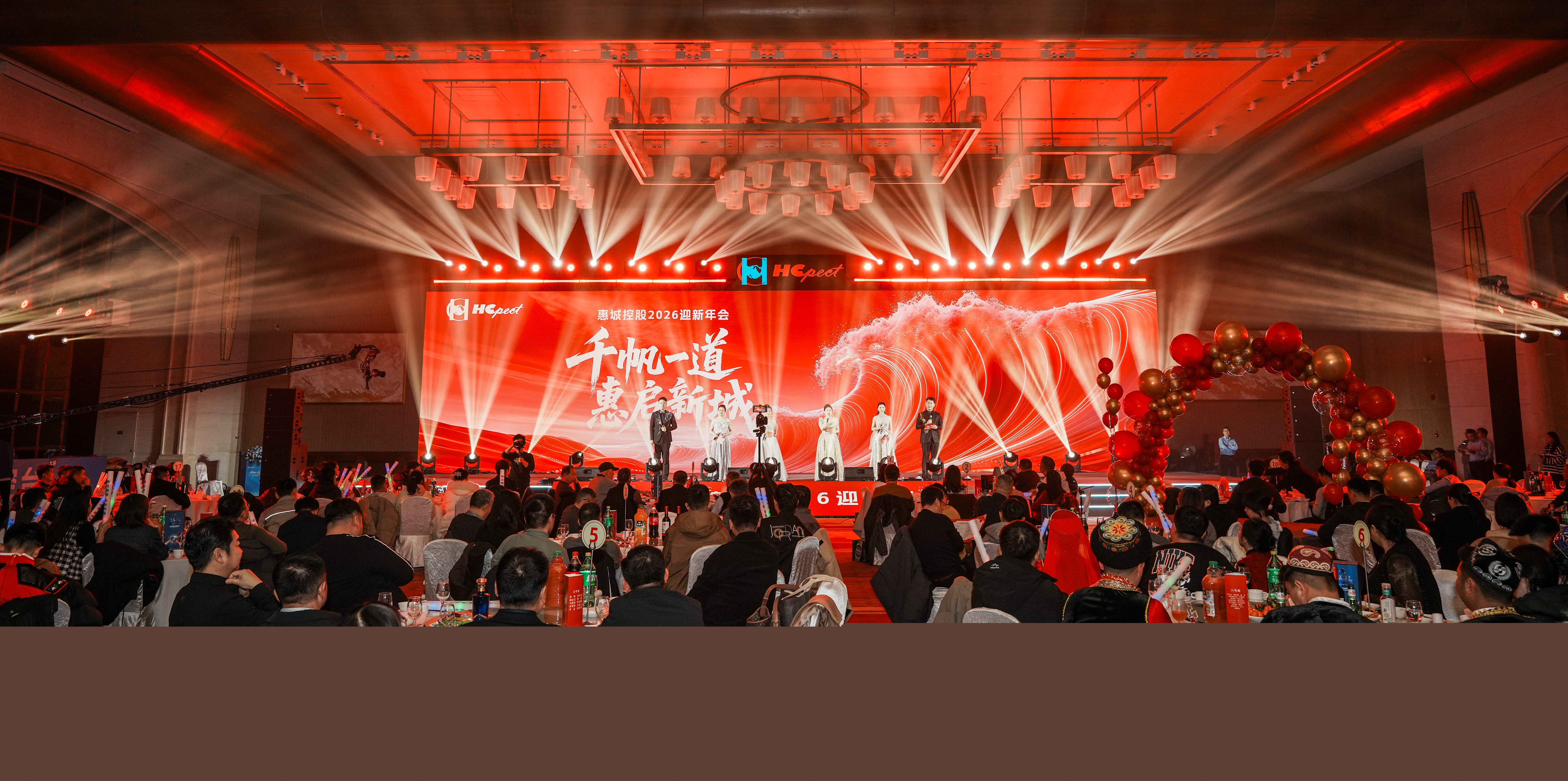 大會下半場迎新聯歡精彩啟幕。員工自編自導的文藝節目輪番上演,涵蓋歌曲、舞蹈、語言類、魔術等多種形式,內容豐富、精彩紛呈,充分展現了惠城人多才多藝、昂揚向上的精神風貌?,F場設置互動采訪與幸運抽獎環節,既分享了惠城奮斗故事,又為員工送上新春福利,暖心的互動與驚喜的開獎讓現場氛圍熱烈非凡。晚宴環節,公司領導登臺致祝酒詞,全體家人舉杯共飲、互道祝福,在溫馨祥和的氛圍中感受惠城大家庭的溫暖。